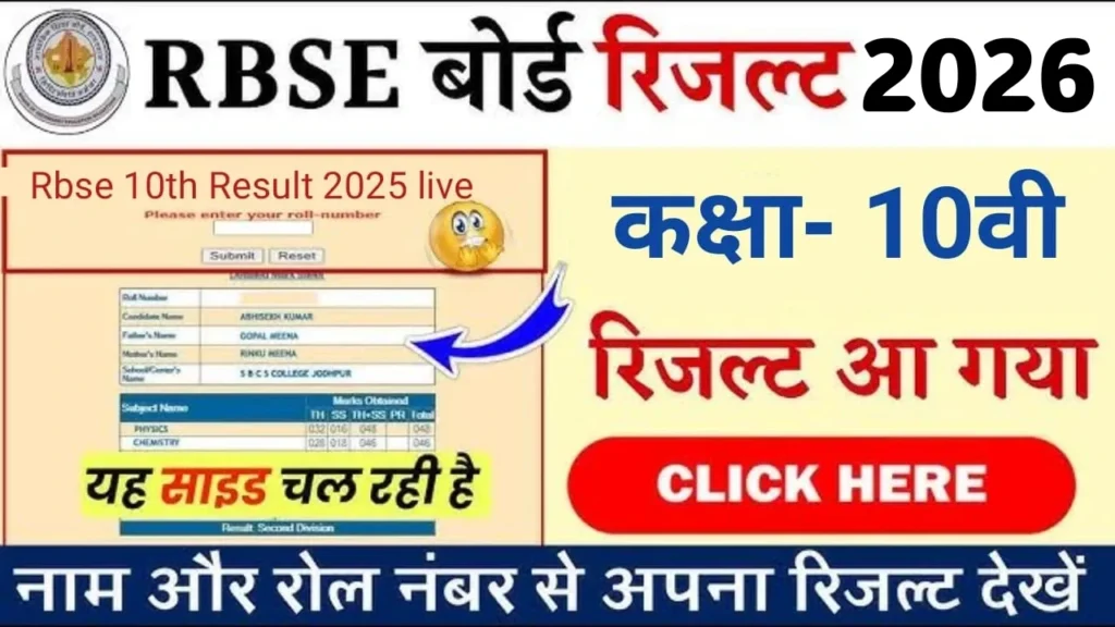 राजस्थान बोर्ड के छात्रों के लिए सबसे बड़ी खबर सामने आ रही है। अगर आपने इस साल RBSE 10th Exam 2026 दिया है, तो अब आपका इंतजार खत्म होने वाला है। लाखों छात्र इस समय RBSE 10th Result 2026 Roll Number Wise सर्च कर रहे हैं और जानना चाहते हैं कि रिजल्ट कब और कैसे … Continue reading RBSE 10th Result 2026 Roll Number Wise: ऐसे करें राजस्थान बोर्ड 10वी का रिजल्ट चेक